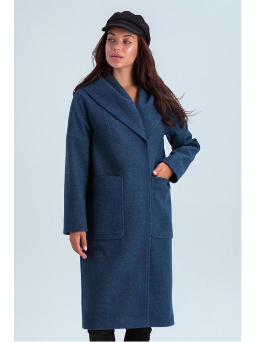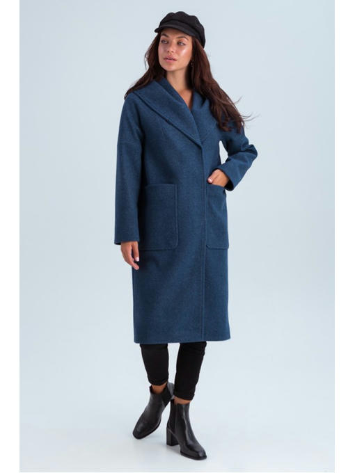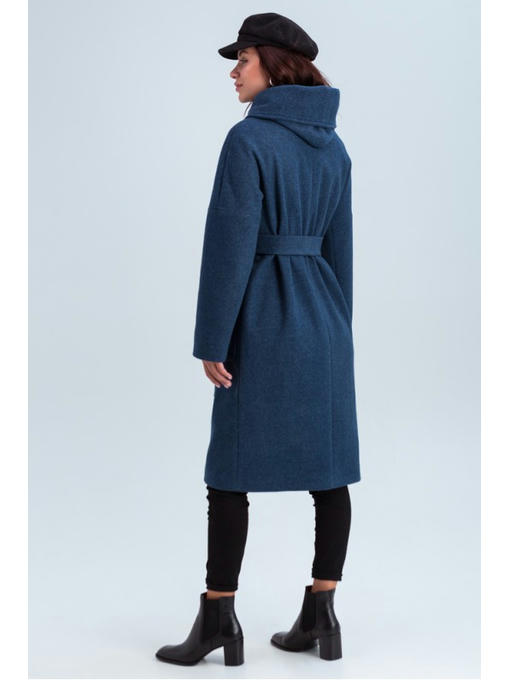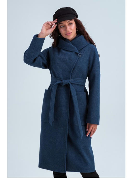 Модель из шерстяной ткани имеет прямой силуэт. Воротник-капюшон. Рукава цельнокроенные. Застежка – кнопки. Большие, не объемные, накладные карманы. В комплекте к пальто ниже колена идет пояс.