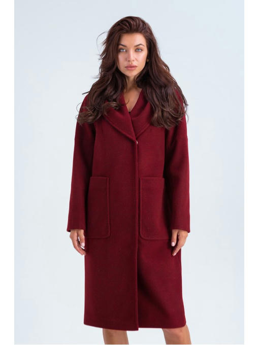Модель из шерстяной ткани имеет прямой силуэт. Воротник-капюшон. Рукава цельнокроенные. Застежка – кнопки. Большие, не объемные, накладные карманы. В комплекте к пальто ниже колена идет пояс.