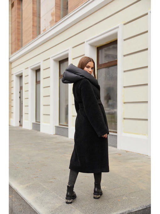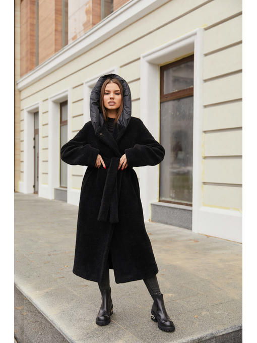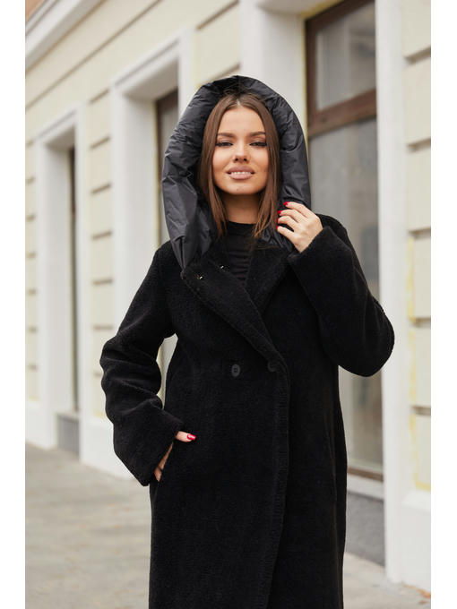 Зимняя шуба тедди с капюшоном классического кроя из высококачественного эко— меха.