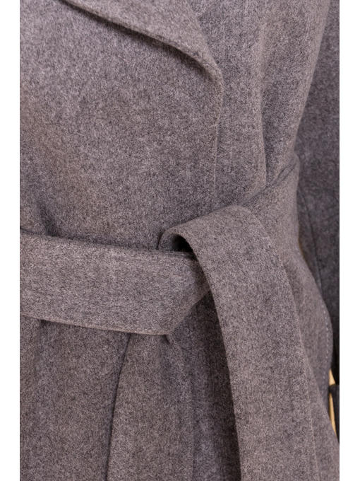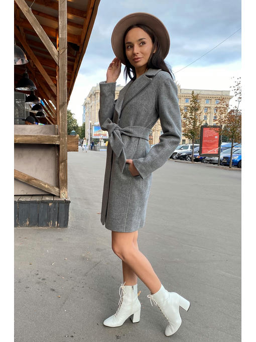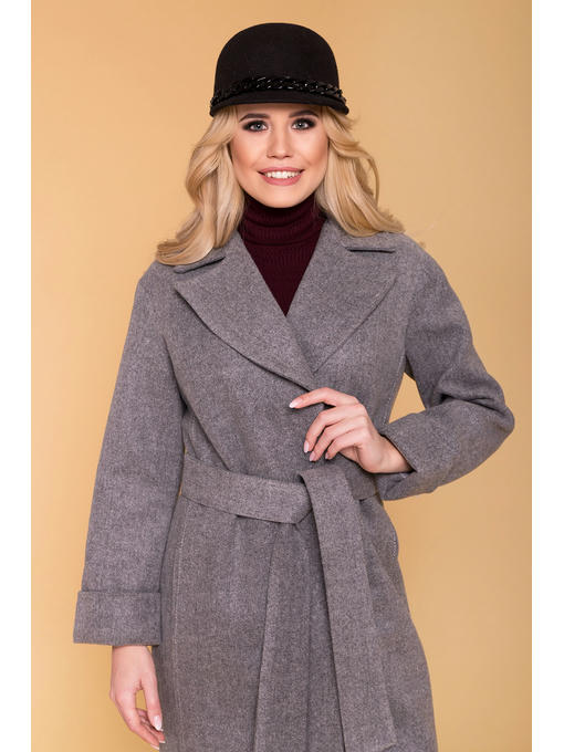 Полуприталенное пальто длиной выше колена. Английский воротник. Застегивается на скрытые кнопки. Прорезные карманы. В комплекте идет съемный пояс из основной ткани. Линия плеча приспущена. Рукав с подворотом.