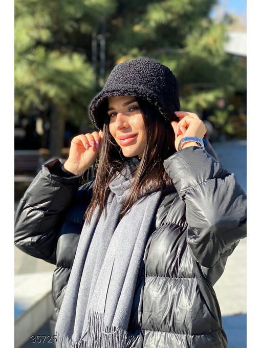 Панама из качественного искусственного меха. Плоский верх, узкие поля. Внутри есть утяжки, что позволяет моделировать размер изделия. Обхват головы: 56 – 57 см.