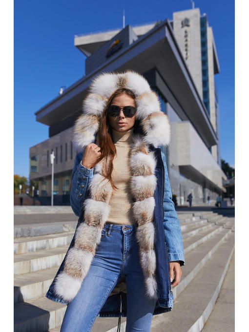 — по краю капюшона и вдоль застежки съемная опушка из натурального меха лисы