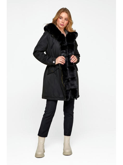 Парка с эко мехом ничем не отличается от обычной парки, за исключением опушки из искусственного кролика. Верх изделия – плащевая ткань, утеплитель – слимтекс и силикон.