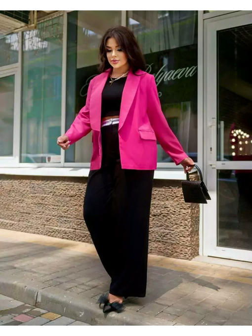 Жакет имеет длинный рукав, по бокам кармана (имитация), без подкладки и застежек.