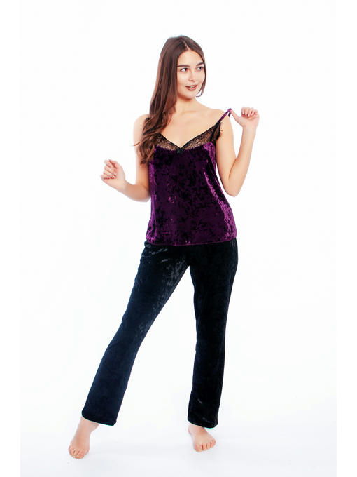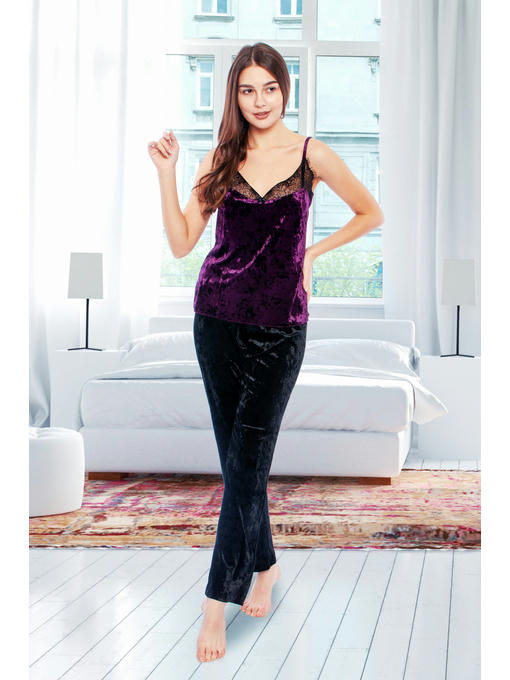 Пижама женская из мягкого и качественного мраморного велюра, черничный,, красивая комфортная незаменима в домашнем гардеробе; можно подобрать комплектом халат и сорочку