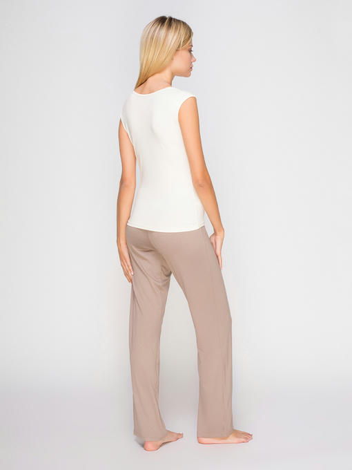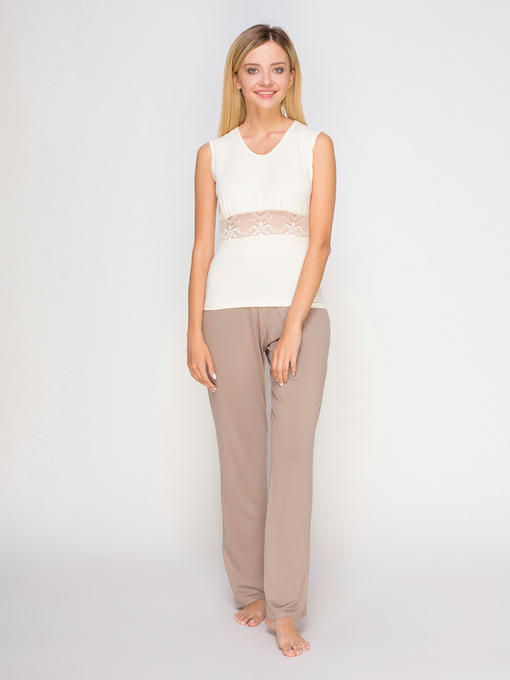 Женская пижама, вискоза с кружевом, майка с брюками, цвет визон с шампаневымр, регулируемые бретели