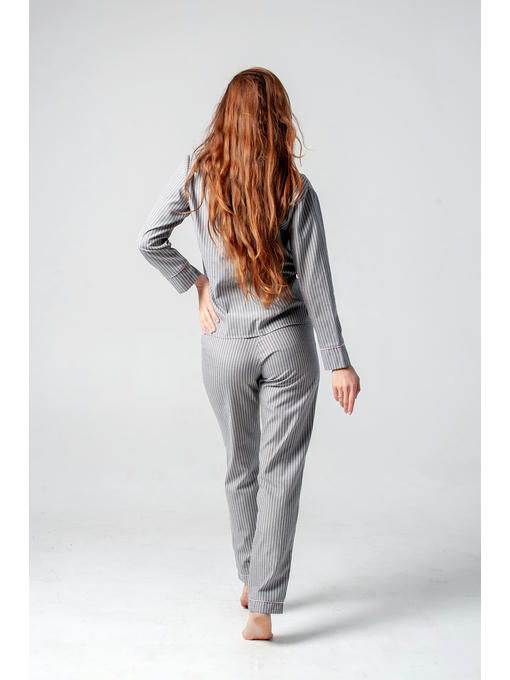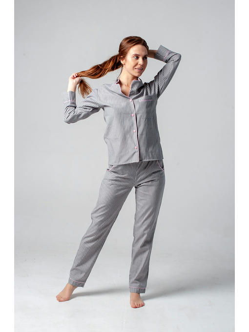 Пижама женская. Хлопковая, цвет светло серый. Кофта с длинными рукавами на пуговицах и брюки. Очень приятная, качественная ткань.