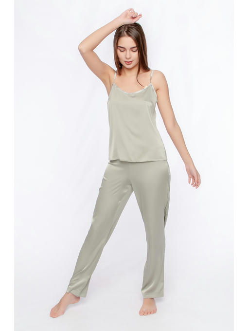 Пижама женская с брюками, из мягкого софта, оливковый; майка и доюки регулируемые бретели; удобный вариант для комфортного сна на каждый день; можно в комплекте с халатом или сорочкой