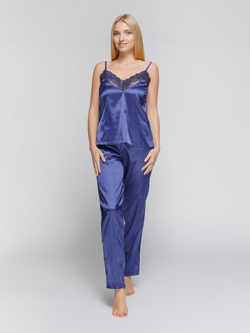 Пижама женская из стрейч атласа, синий