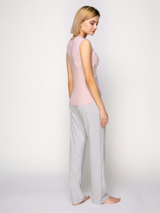 Женская пижама, вискоза. С кружевом. Серый с розовым. Можно в комплекте с халатом