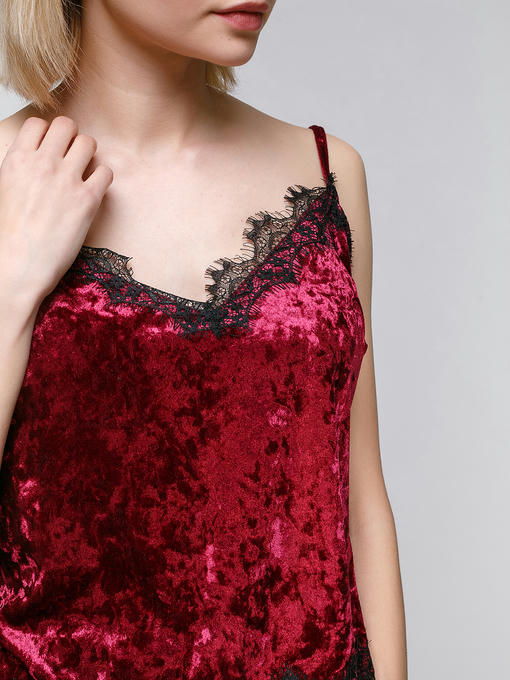 Пижама из мраморного велюра, марсала с черным