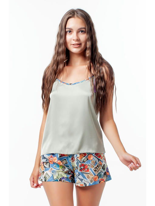 Женская пижама з шортами из шелка армани. Цвет: оливковый