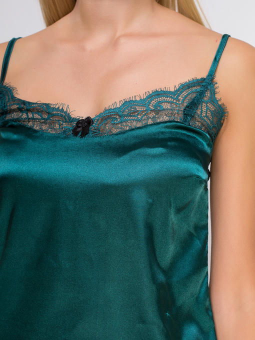 Стрейч атлас с кружевом, изумруд с шампанью