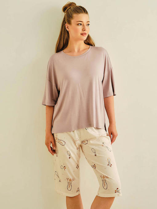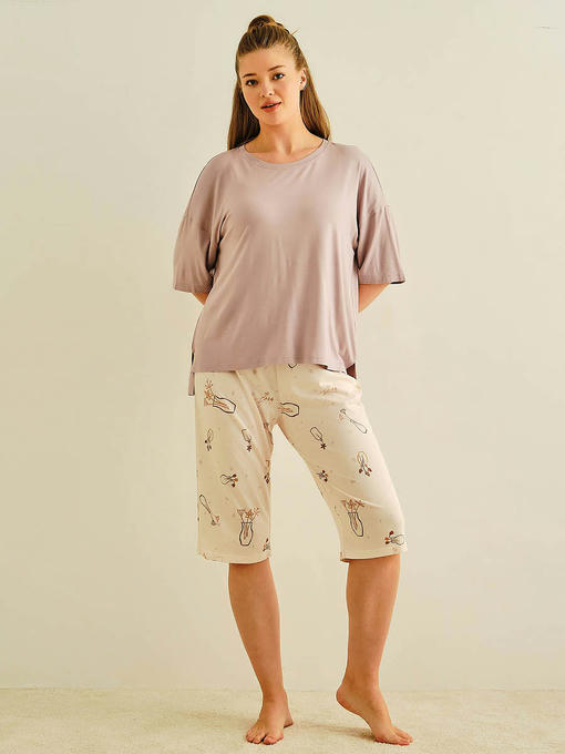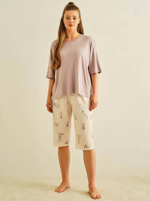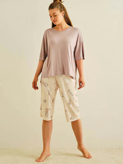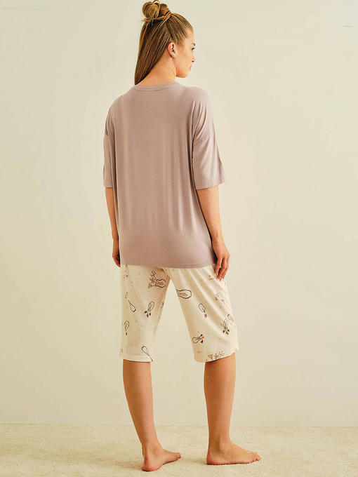 Пижама женская, состоящая из футболки и капри