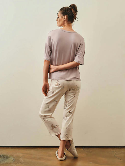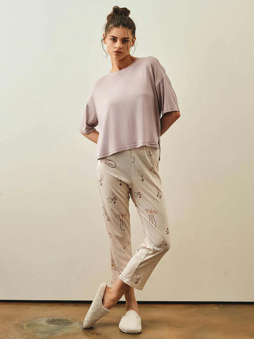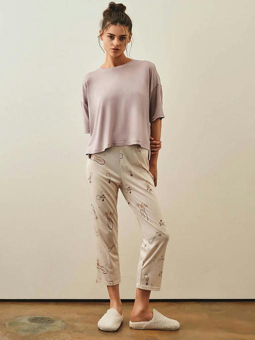 Пижама женская, состоящая из футболки и укороченных брюк