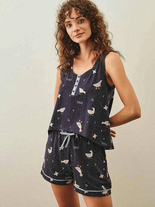 Пижама женская, состоящая из майки на широких бретелях и шорт