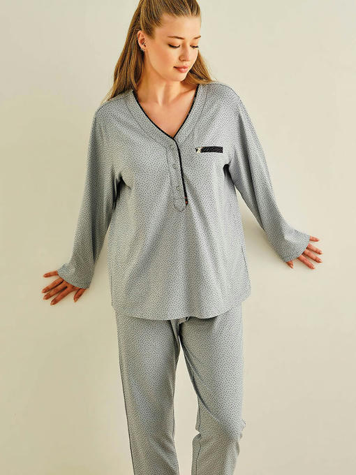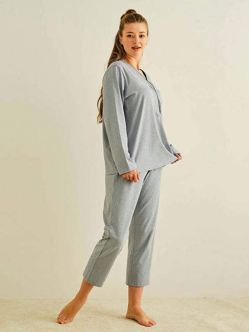 Пижама женская, состоящая из футболки с длинным рукавом и брюк