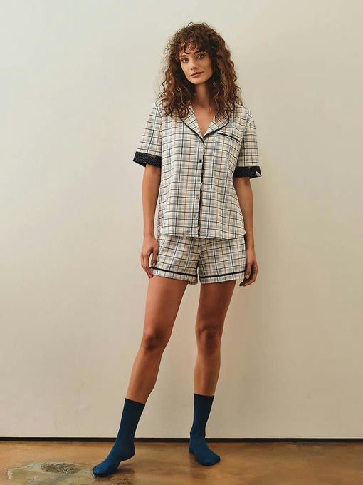 Пижама женская, состоящая из рубашки с коротким рукавом и шорт