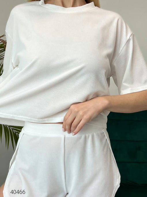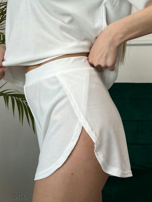 Пижама женская. Футболка и шорты с разрезами по бокам. Ткань: турецкий трикотаж рубчик.