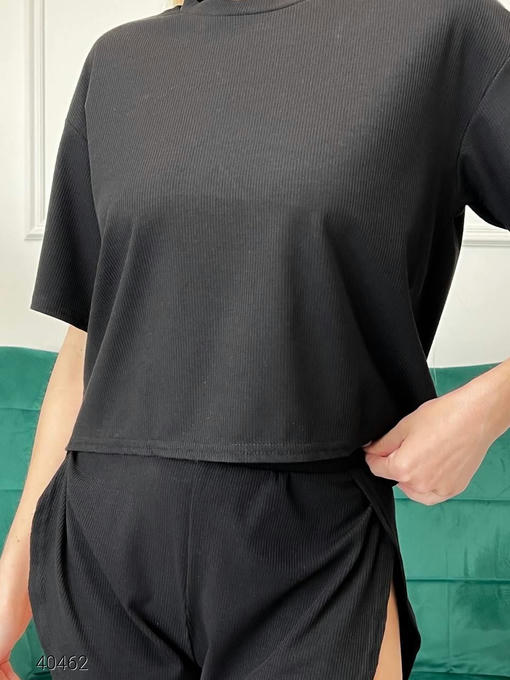 Пижама женская. Футболка и шорты с разрезами по бокам. Ткань: турецкий трикотаж рубчик.