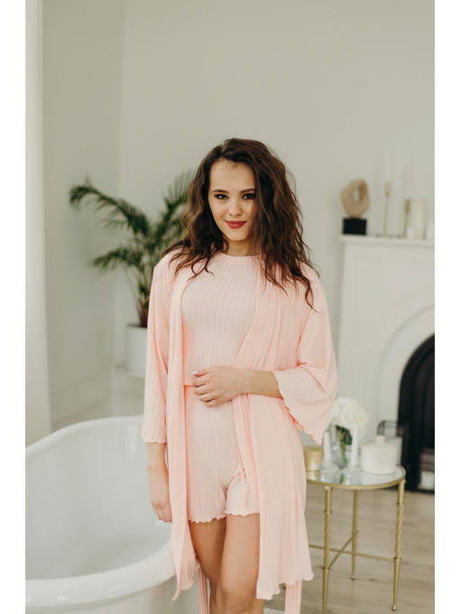 Приятная, мягкая ткань, идеальная посадка, очень комфортная для ежедневного ношения. Можно в комплекте с халатом.