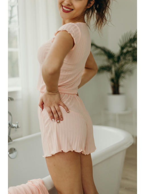 Пижама женская, ткань вискоза рубчик, цвет персиковыйr.
