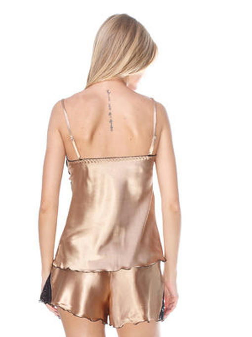 Пижама женская из стрейч атласа с кружевом, золото с черным