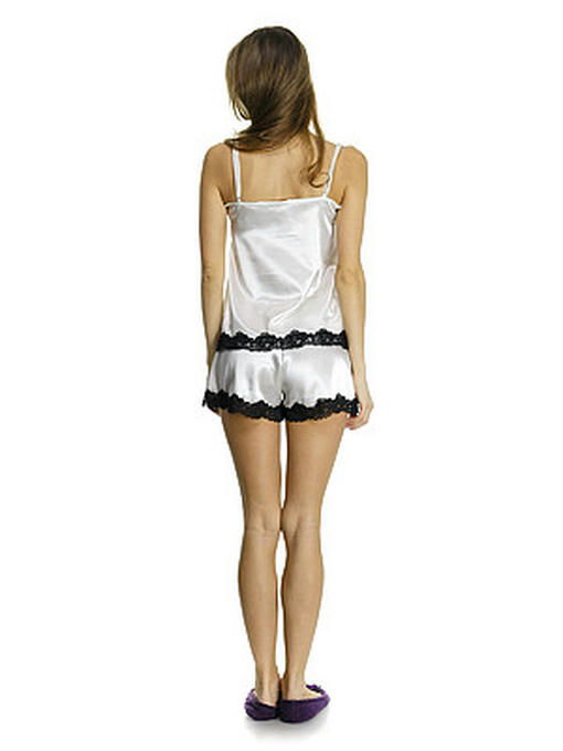 Пижама из стрейч атласа, шампань с черным