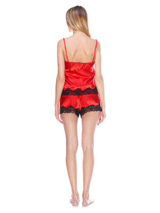 Пижама женская из стрейч атласа з кружевом, красный с черным