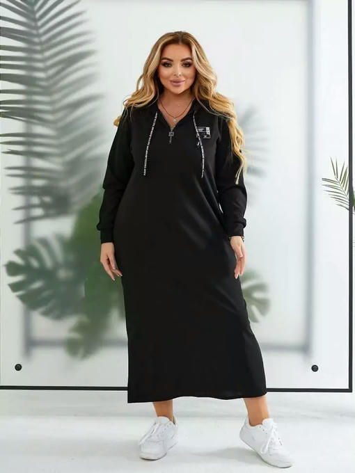 Платье свободного кроя с длинным рукавом. Декольте на молнии.