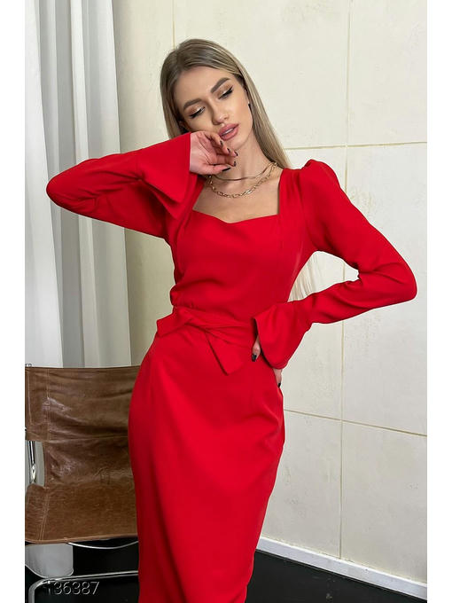Платье-футляр миди с поясом