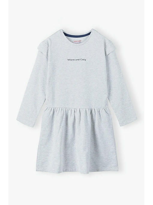 – платье украшено небольшим текстовым принтом