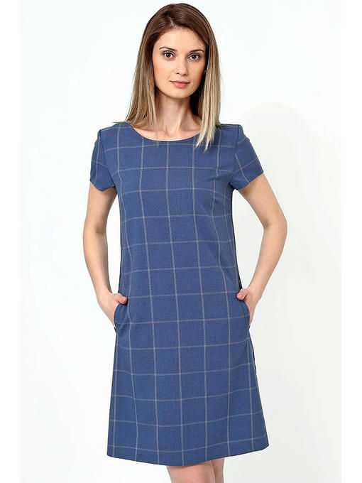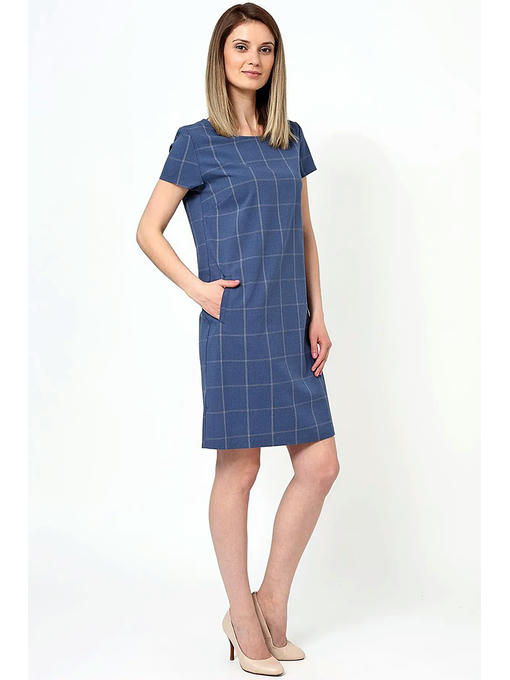 Платье силуэт трапеция. Короткий втачной рукав, спереди два прорезных кармана с листочкой, в среднем шве спинки потайная застежка на молнии. Выполнено из мягкой смесовой ткани . Длина для размеров XS, S, M выше колена, для размеров L, XL длина по колено