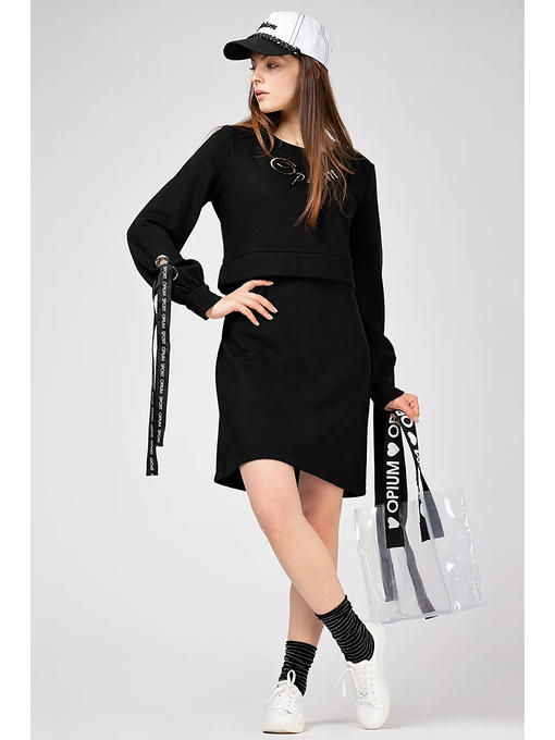Женское платье из гладкого трикотажного полотна с внутренним флисовым слоем, выполнено в стиле спорт-шик, сочетающим в себе комфорт и красоту. Это платье удачно впишется в жизнь современной женщины. Гламурные детали: брендированные банты на рукавах, серебристый эмбоссированный логотип и атрибуты спортивной одежды: простой фасон, практичная ткань – такое сочетание не оставит никого равнодушным! Носите платье с кроссовками и будьте неотразимы! Это платье есть в энергичной красной и классической черной расцветках