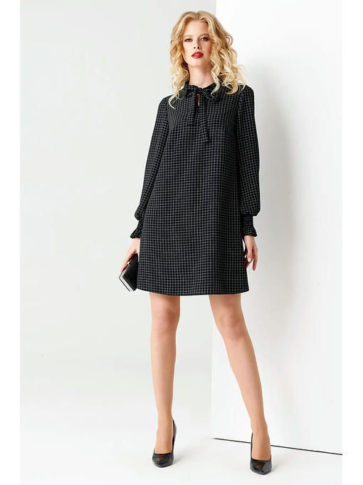 Стильное молодёжное платье трапецевидного силуэта. Приятная ,струящаяся ткань не мнётся и дарит чувство комфорта.По горловине выполнена стойка,переходящая в бант спередиПо переду от горловины выполнен разрез. Рукава втачные,длинные,разширены книзу и стянуты на эластичный манжет. По низу рукава образуется рюш из основной ткани. Платье подойдёт как для торжественного случая,так и как вариант на каждый день для девушки,которая стремиться всегда быть на высоте