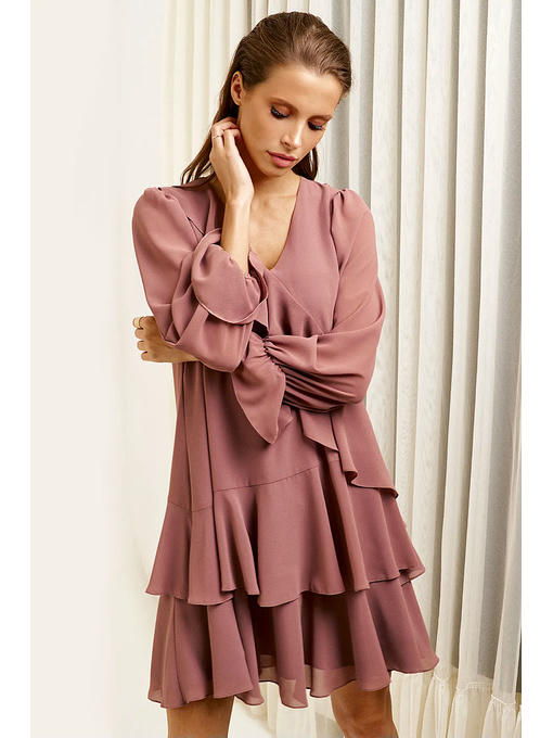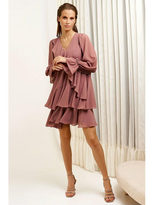 Женское платье – универсальный предмет гардероба, который вы сможете надеть на дружескую или романтическую встречу, торжественное мероприятие, обычную прогулку. Лаконичный дизайн и нежный цвет модели позволяют комбинировать ее с украшениями, яркими аксессуарами. Короткое платьев сочетании с обувью на каблуке зрительно увеличит ваш рост.Нарядное платье с пышными притачными воланами не обтягивает тело, можно подчеркнуть тонкую талию поясом, который идет в комплекте. Платье открывает стройные ножки. Оно смотрится элегантно и женственно, придает образу утонченность