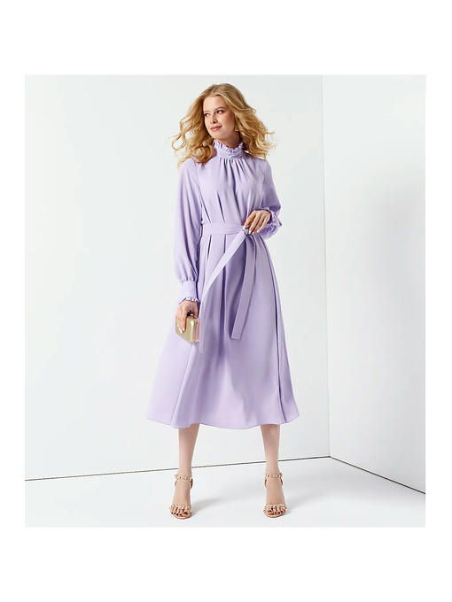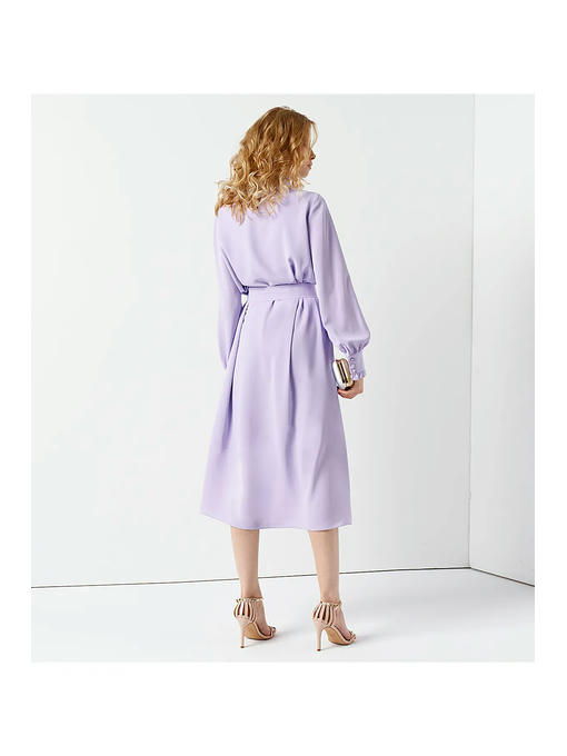Платье-миди с воротником-стойкой и рукавами на манжетах