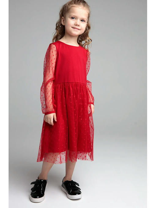 Платье трикотажное. сетка в горох сверху. Подкладка из качественного и приятного на ощупь трикотажа. Высокое содержание хлопка 95%. Благодаря наличию 5% эластана в составе ткани изделие держит форму. Застежка на потайную молнию на спине