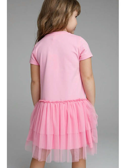 Платье трикотажное с юбкой из мягкой сетки. Верх платья из качественного и приятного на ощупь трикотажа. Высокое содержание хлопка 95%. Благодаря наличию 5% эластана в составе ткани изделие держит форму