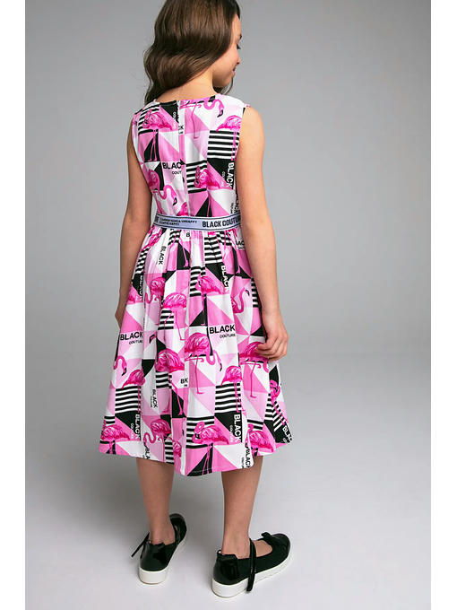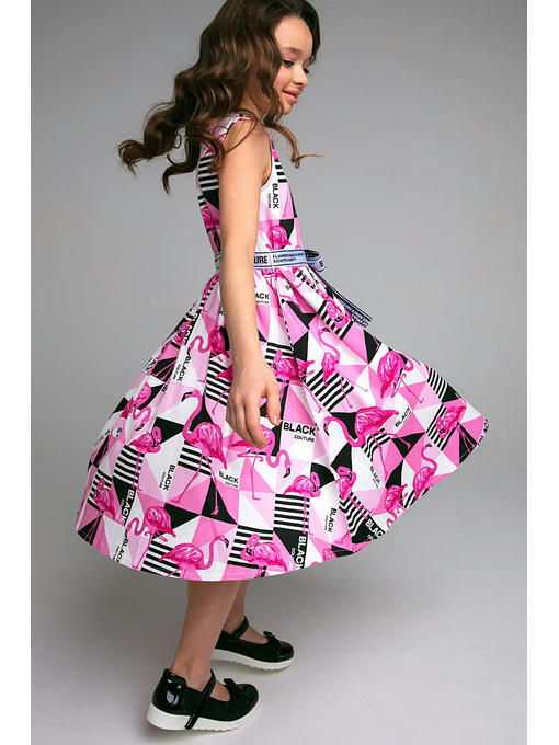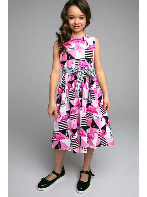 Платье из качественного текстиля. Высокое содержание хлопка 95%. Благодаря наличию 5% эластана в составе ткани изделие держит форму и меньше мнется. Пояс по талии
