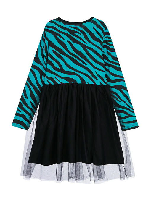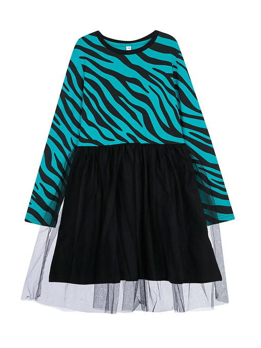 Платье трикотажное с юбкой из мягкой сетки. Верх платья из трикотажа с высоким содержанием хлопка 95%. Благодаря наличию 5% эластана в составе ткани изделие держит форму