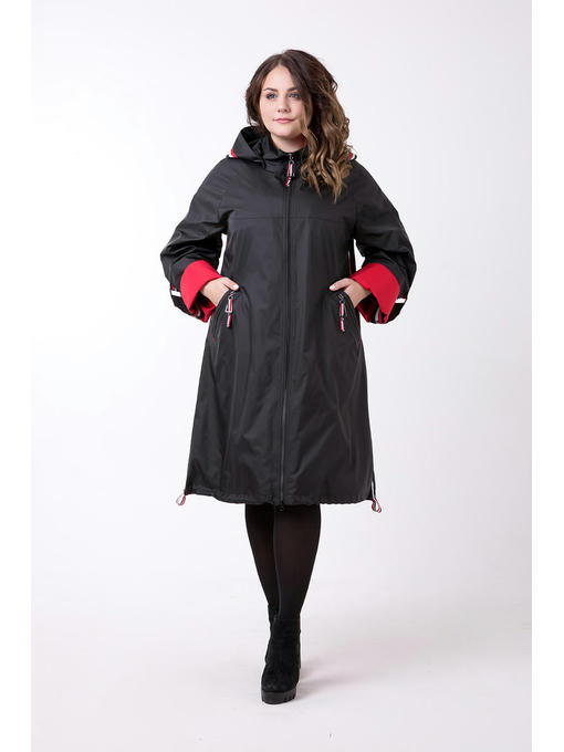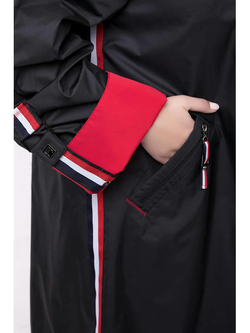 Плащ ветровка больших размеров от 52 до 72! Силуэт А-образный что отлично подойдет дамам с пышными формами, застежка центральная на молнию. Капюшон съёмный на пуговицах. Изюминка плаща – репсовая лента по бокам, на спинке, так же из репсовой ленты прикрепляется патта. Прорезной карман декорирован листочкой с молнией которая не застегивается.