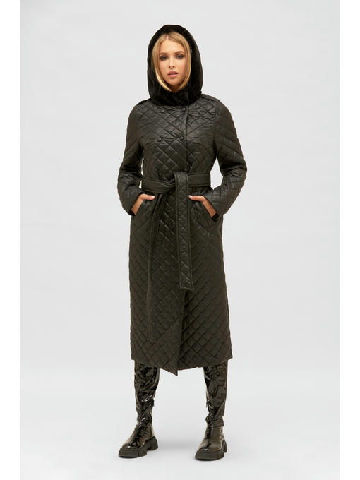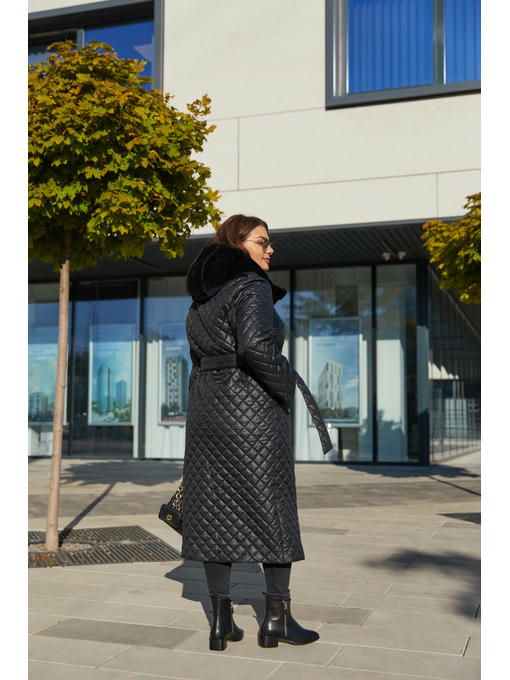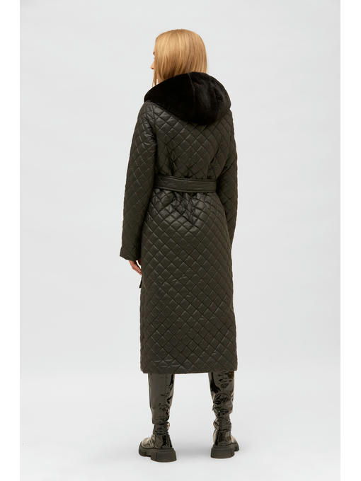 Зимний стеганый плащ с меховым капюшоном из эко кролика.