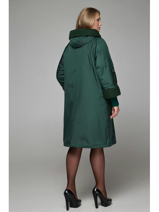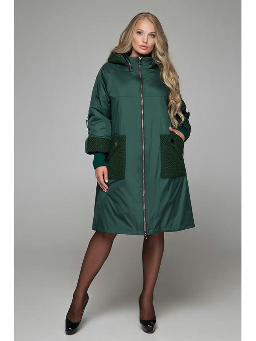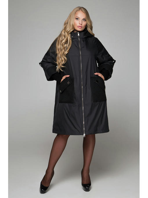 Силуэт плаща выполнен А-образно, что отлично подойдет дамам с пышными формами до 68 размера, такой силуэт скрывает все недостатки. Укороченный рукав с отделкой из итальянского трикотажа. Карманы накладные, с кнопками темный никель. Подкладочная ткань – нейлон. Утеплитель силикон 100. Капюшон съемный.
