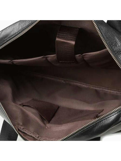 Размеры (X*Y*Z):38*28*7 см. Имеет плечевой ремешок регулируемой длины (максимально – 155 см). Материал: кожа. Подкладка изготовлена из плотной ткани. Цвет: черный. Цвет фурнитуры: серебро. Количество основных отделений: 1. Внутри есть карман для ноутбука на липучке, карман на молнии и 2 открытых кармана для мелочей. На лицевой стороне 2 кармана – прорезной карман на молнии и накладной карман на магнитных копках. На тыльной стороне есть прорезной карман на молнии. Портфель имеет две ручки для переноски в руке. Их длина 35 см. Аксессуар можно носить на плече, руке и через плечо. Модель закрывается молнией. Документы формата А4 помещаются в портфель. Страна происхождения BUFFALO BAGS, а также страна-производитель – Китай. Деловой мужской портфель отлично подойдет для работы, деловых встреч или командировок. Среднего размера. Подходит для ношения документов формата А4 и ноутбука. Сделано из натуральной кожи. Имеет локанический стильный дизайн. Придаст уверенность и завершенность Вашему образу. Аксессуар имеет качественную металлическую фурнитуру серебристого цвета. Станет отличным подарком для мужчины всех возрастов.