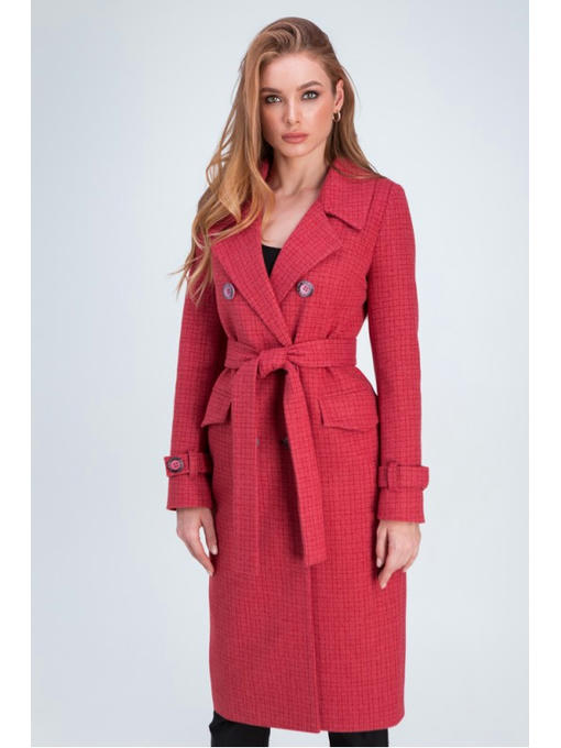 Английский воротник. Втачные рукава визуально делают плечи более узкими. На рукавах есть паты. Предусмотрены 2 кармана с клапаном. Пояс из такой же шерстяной ткани, из которой сшито клетчатое пальто, поможет еще больше выделить женственные изгибы.
