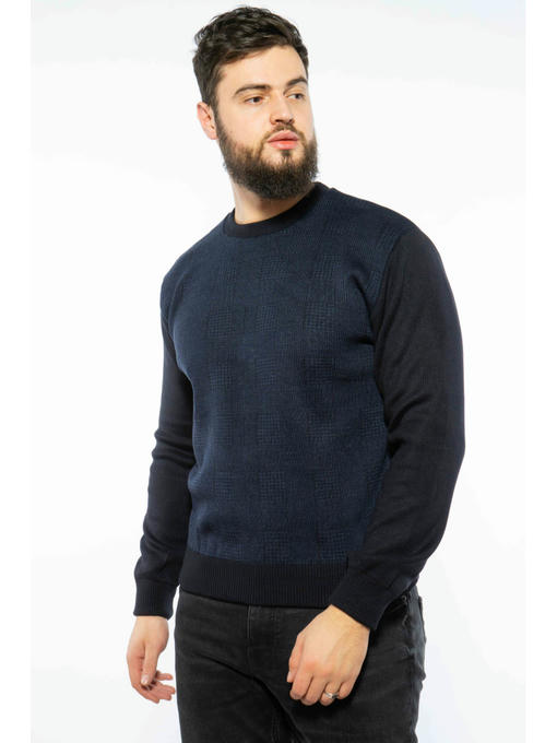 Однотонный мужской свитер с контрастной отделкой отличающейся цветом и клетчатым узором вязки передней части изделия, послужит прекрасным выбором для любого мужчины. Универсальная и стильная модель поможет в создании благородного образа и обеспечит тепло и комфорт.