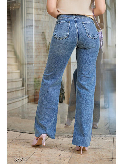 Джинсы из качественного коттона. Завышенная талия, шлёвки, боковые прорезные карманы и накладные сзади, скрытая ширинка с застёжкой на пуговицу. Состав ткани: 98% – коттон, 2% – эластан.