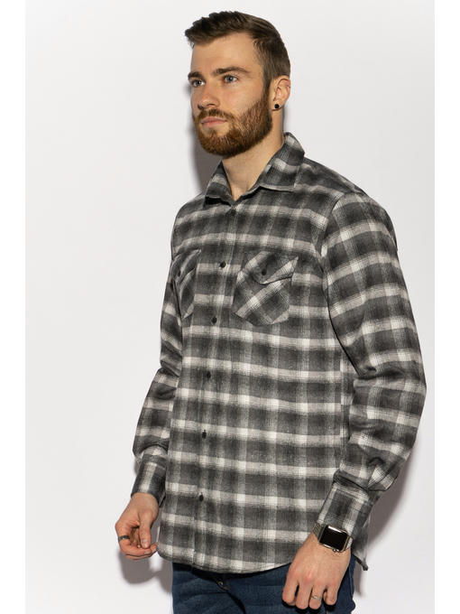 Стильная и теплая, клетчатая мужская рубашка, выполнена из плотного, ворсистого хлопка. Данное изделие, прекрасно подходит в качестве аксессуара при создании благородного образа в прохладное время года.
