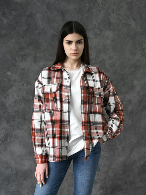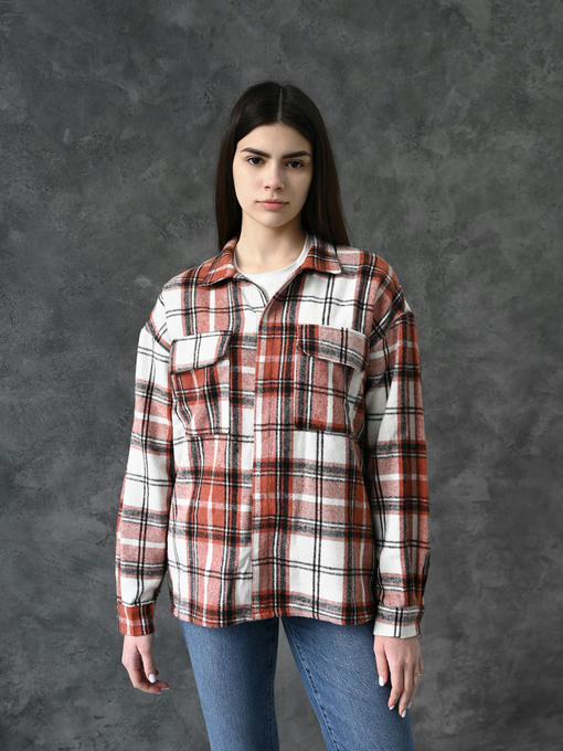 Рубашка-куртка – бело-коричневая клетка